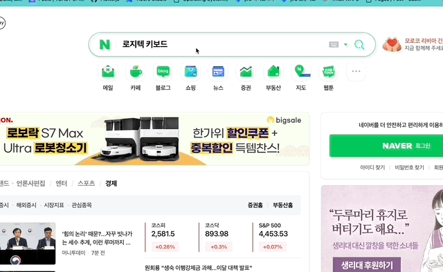 I tried typing directly into the search bar on Naver.