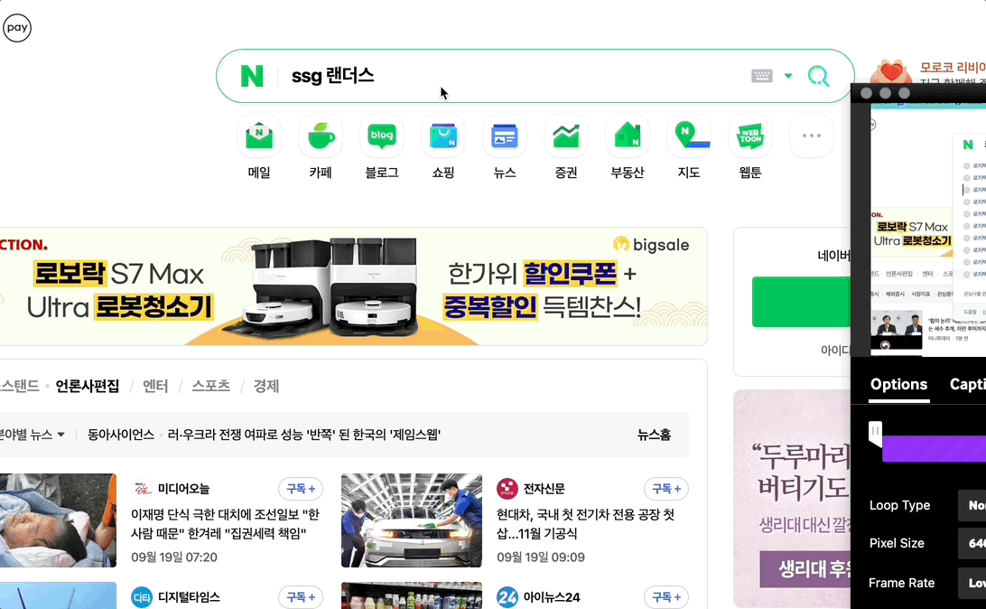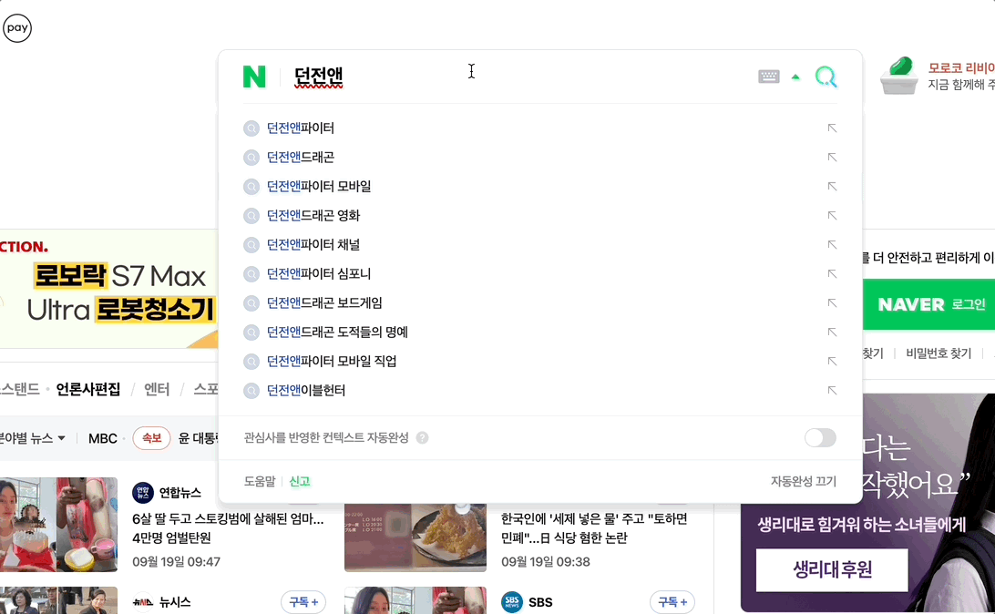 Searching involves using the search term to fetch data on the page. In Naver's case, the search results window closes and the focus is lost as the page navigates.